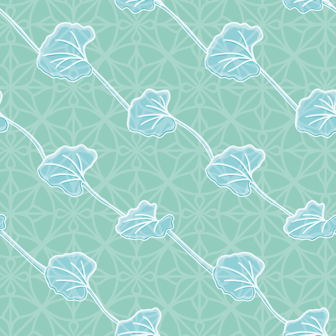 Intertwined leaves vector repeat pattern. Fan shaped foliage seamless illustration background.