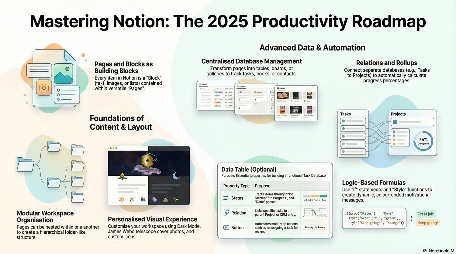 Mastering Notion 2025: The Ultimate Productivity Roadmap (Databases, Relations, Rollups & Automation Guide)