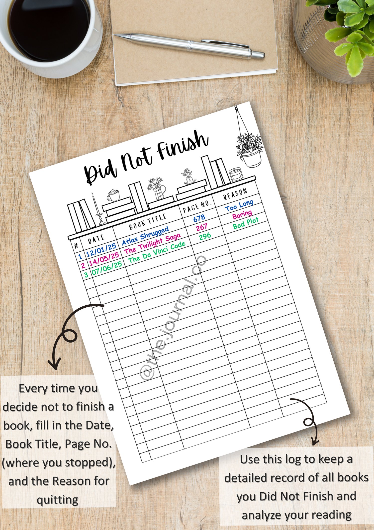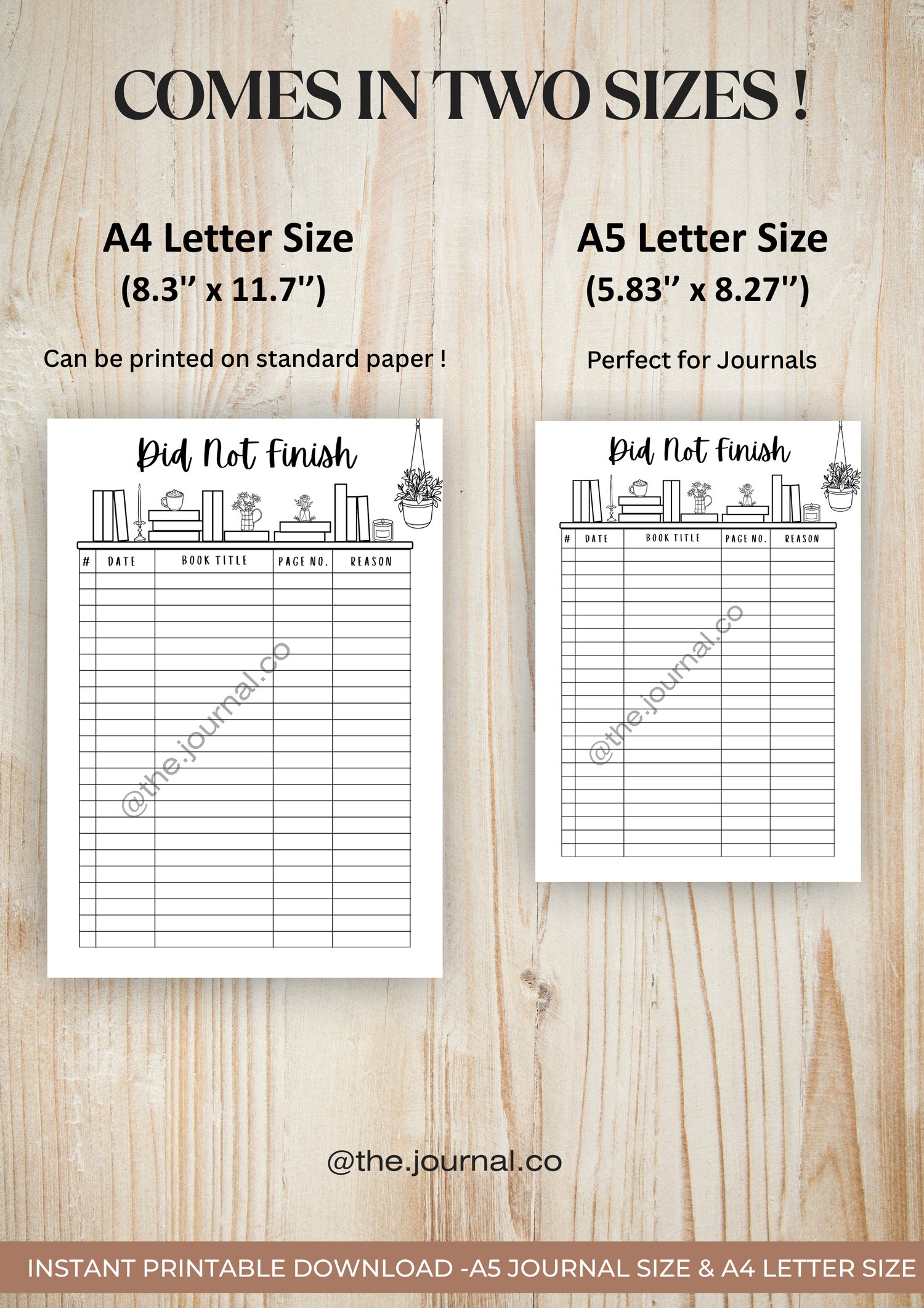 Books I Did Not Finish - Printable A4 letter size & A5 Journal size pages