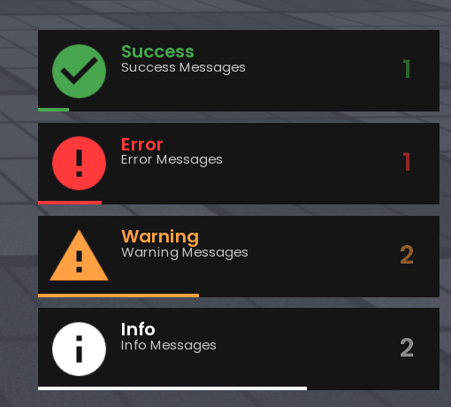 Each notification is designed to be instantly recognizable through distinct colors and icons, allowing players to quickly understand the nature of the message without needing to pause or divert their attention from gameplay