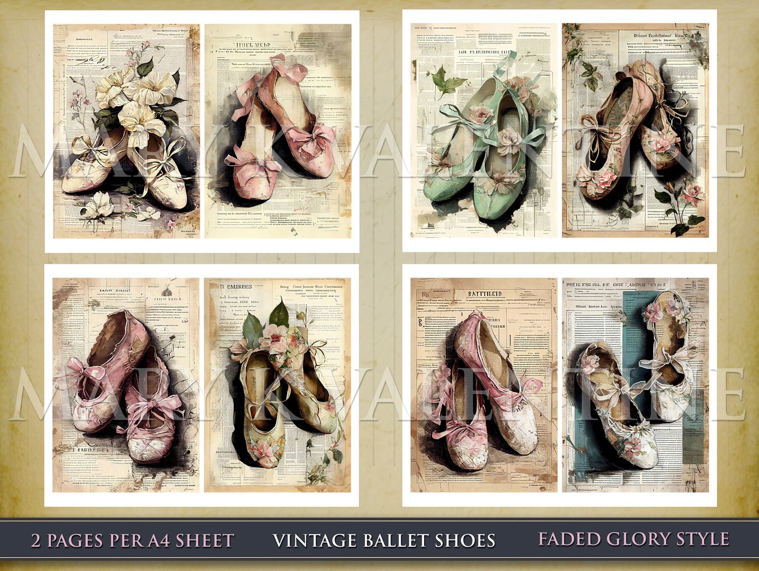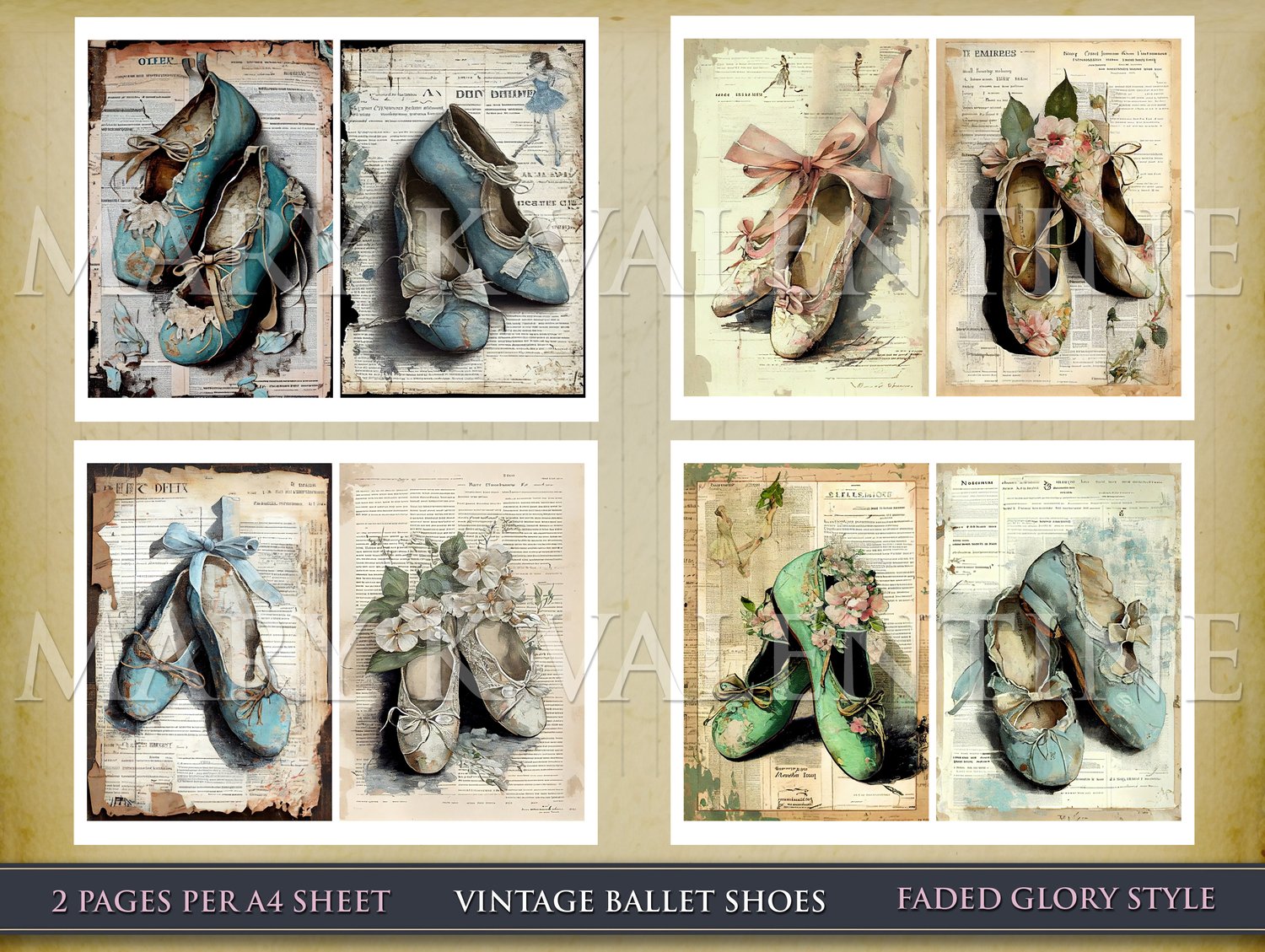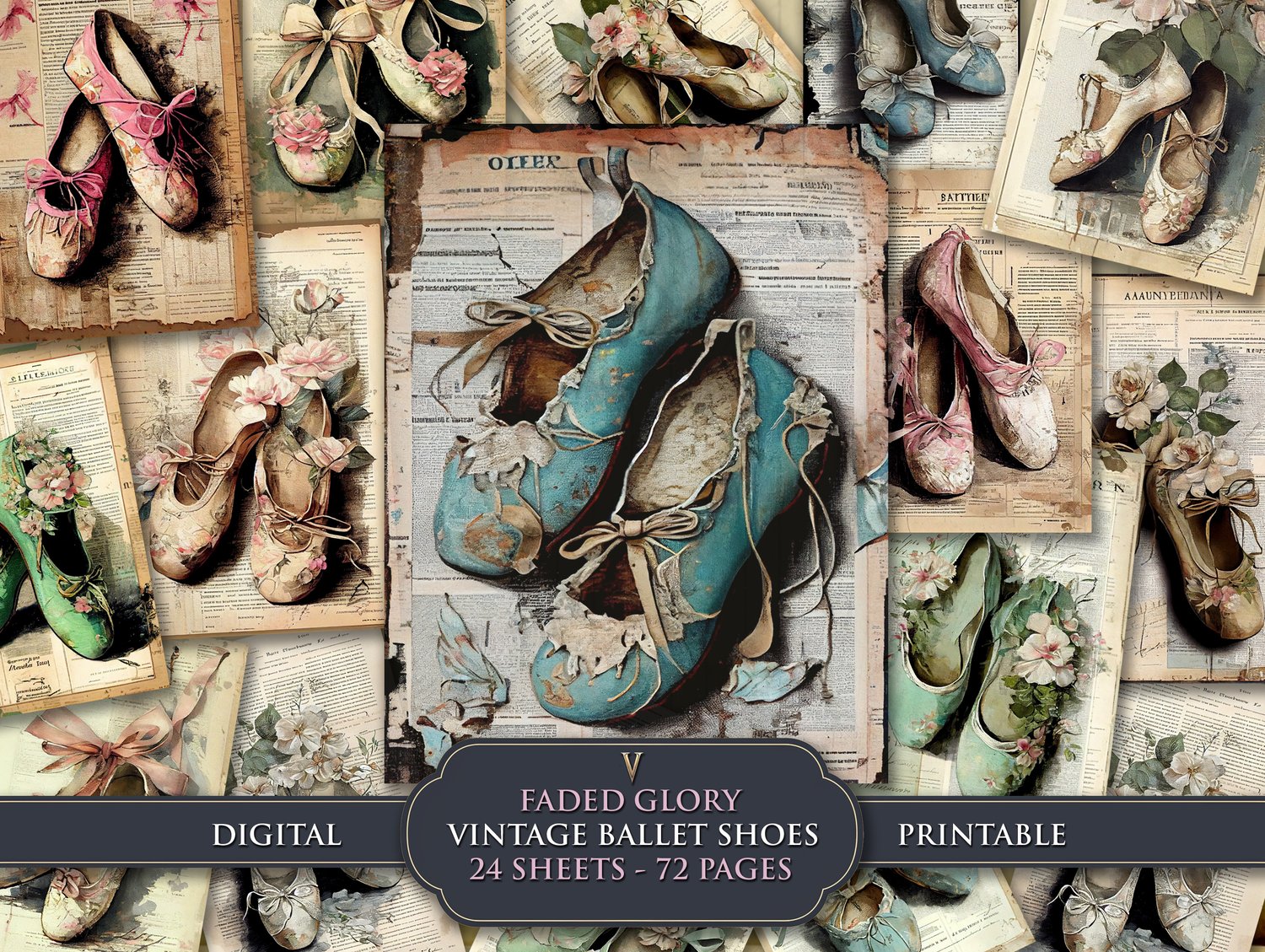 Faded Glory Vintage Coloured Ballet Shoes Distressed Junk Journal Printable Papers