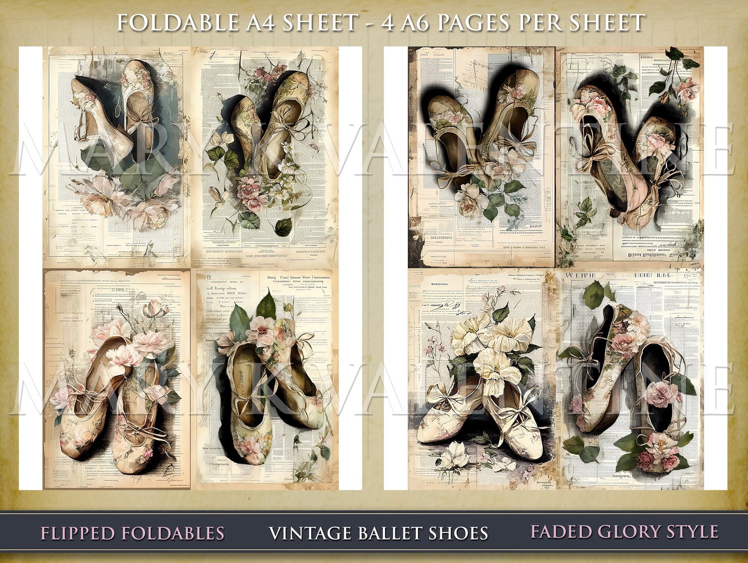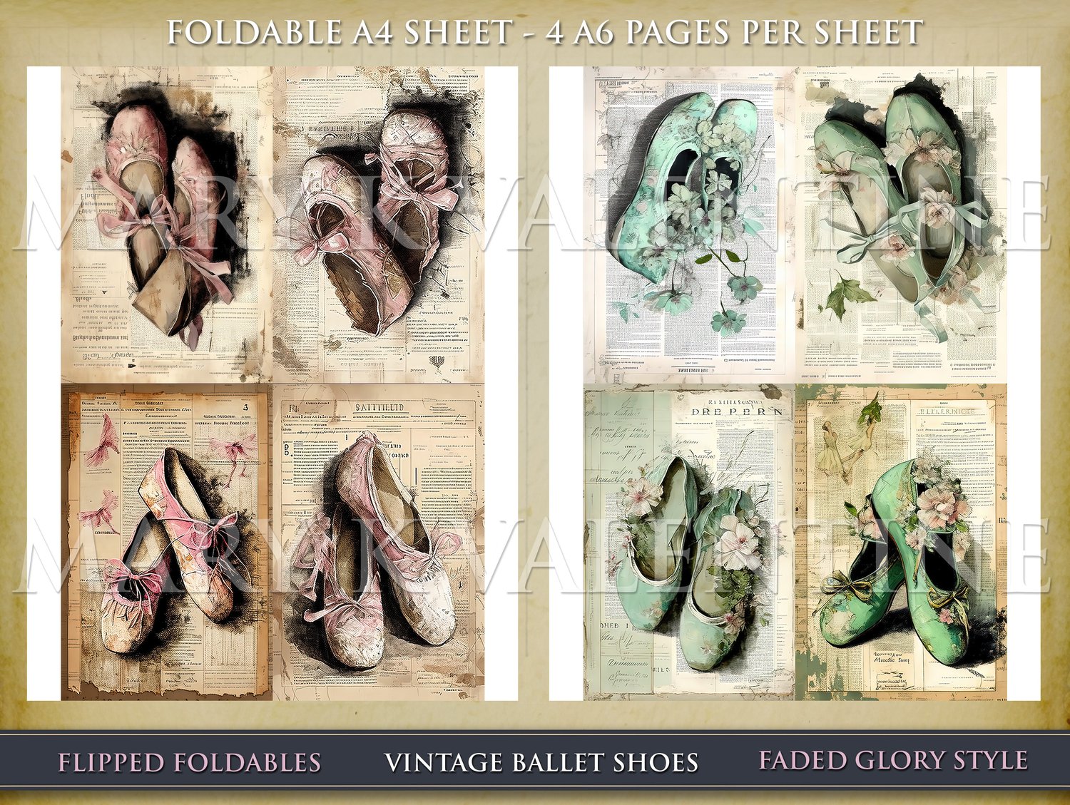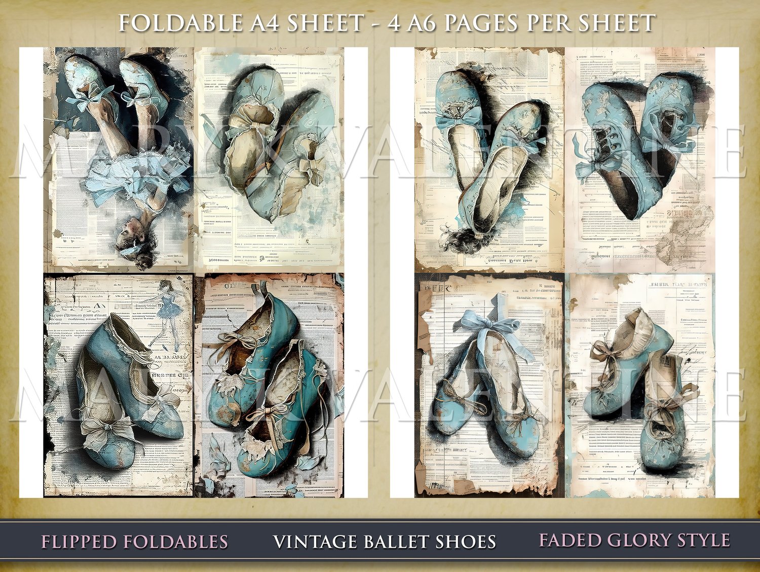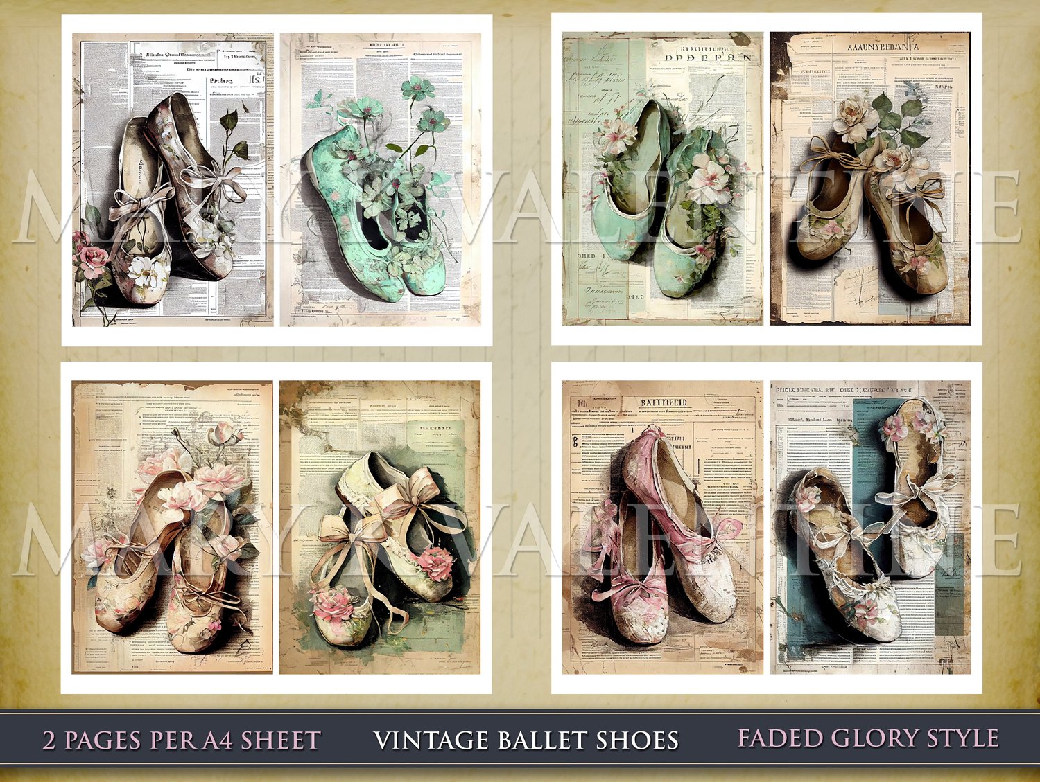 Faded Glory Vintage Coloured Ballet Shoes Distressed Junk Journal Printable Papers