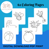 62 Printable coloring pages for kids - Toddlers, preschoolers, Coloring Book, Coloring Page, Preschool, Kindergarten, Homeschool, Printables