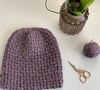 BURLAP WEAVE HAT is a beanie designed with a very slight slouch. It features an all-over ribbing pattern interspersed with slipped-stitches that produces a woven effect.