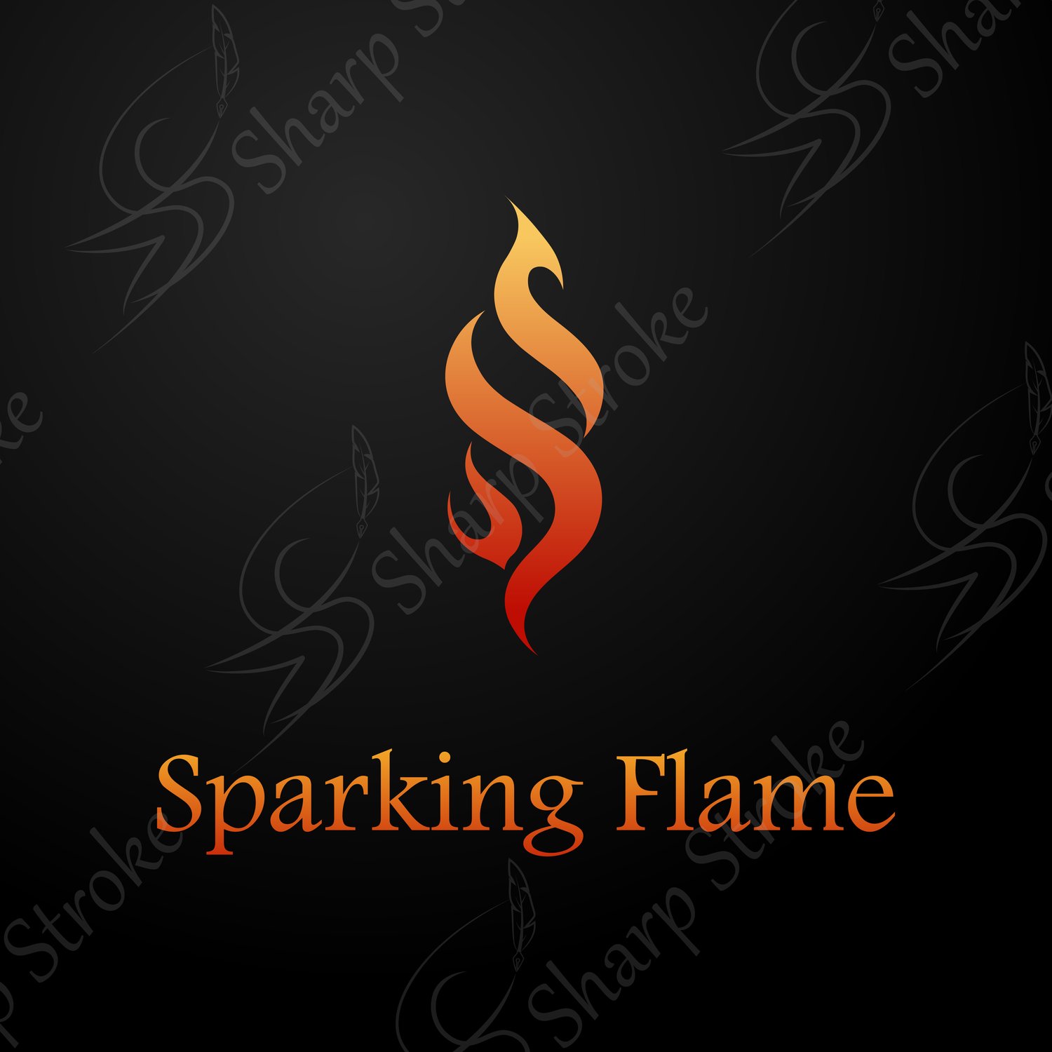 A scalable vector illustration of the letter "S" with a red to orange gradient flame on a black background, featuring the text "Sparking Flame" below. Ideal for fiery and energetic designs