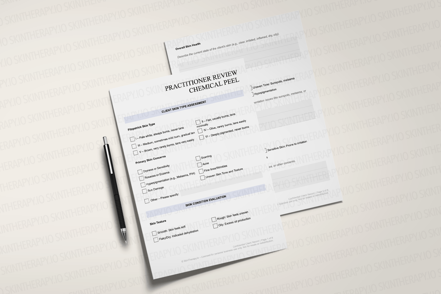 Chemical Peel Treatment Assessment | Practitioner Review Form | Fillable PDF Skin Analysis Record