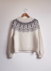 Designed as an easy-going but stylish wardrobe piece, Momo Motte is a very beginner-friendly project, either as a first sweater or for venturing into the world of colorwork knitting. The not too complicated motif and larger gauge make it a relatively quick knit, and suitable for any yarn between worsted and bulky weight.