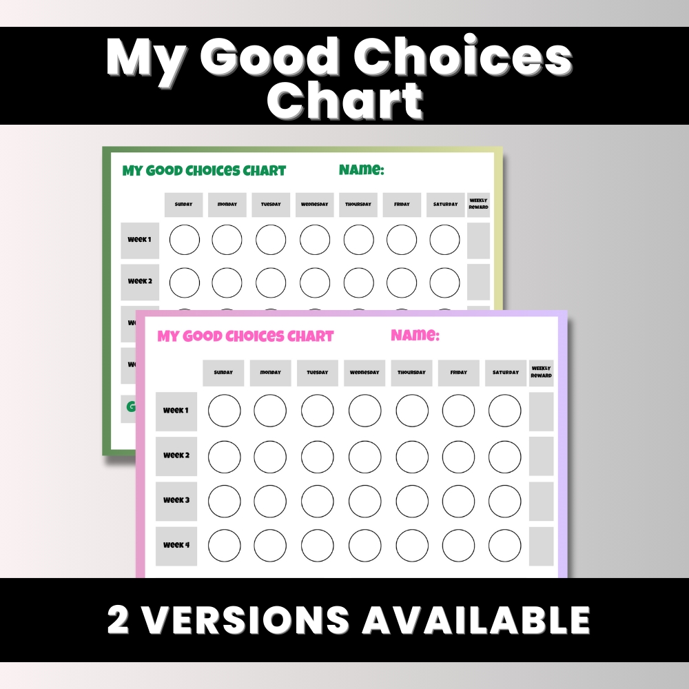 With My Good Choices Chart, you’ll have a positive and effective way to help your child manage their behavior, learn self-discipline, and feel proud of their progress—all while making it fun!