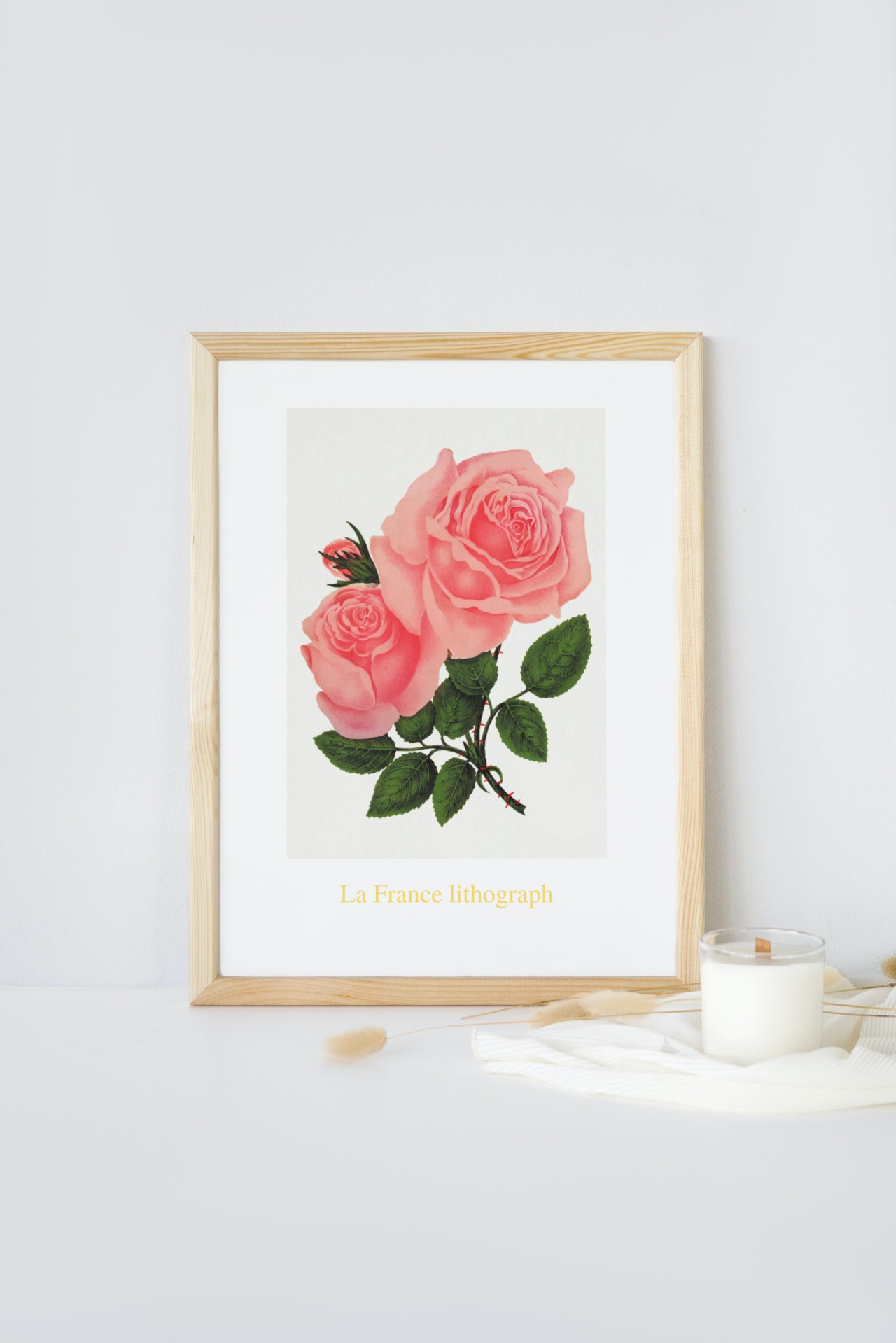 Pink rose, La France lithograph. Digitally enhanced from the original 1900 edition plates of Botanical Specimen published by Rochester Lithographing and Printing Company.