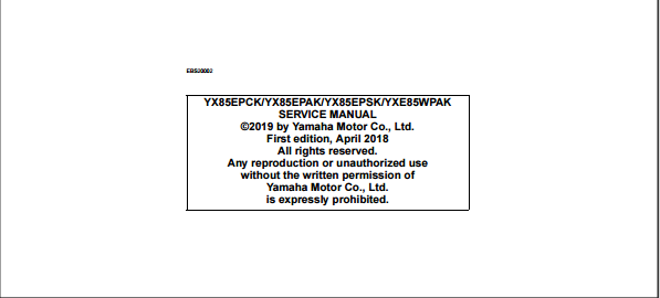 2019 Yamaha Wolverine YX85EPCK YX85EPAK YX85EPSK YXE85WPAK Service Manual Part No. LIT-11616-32-02