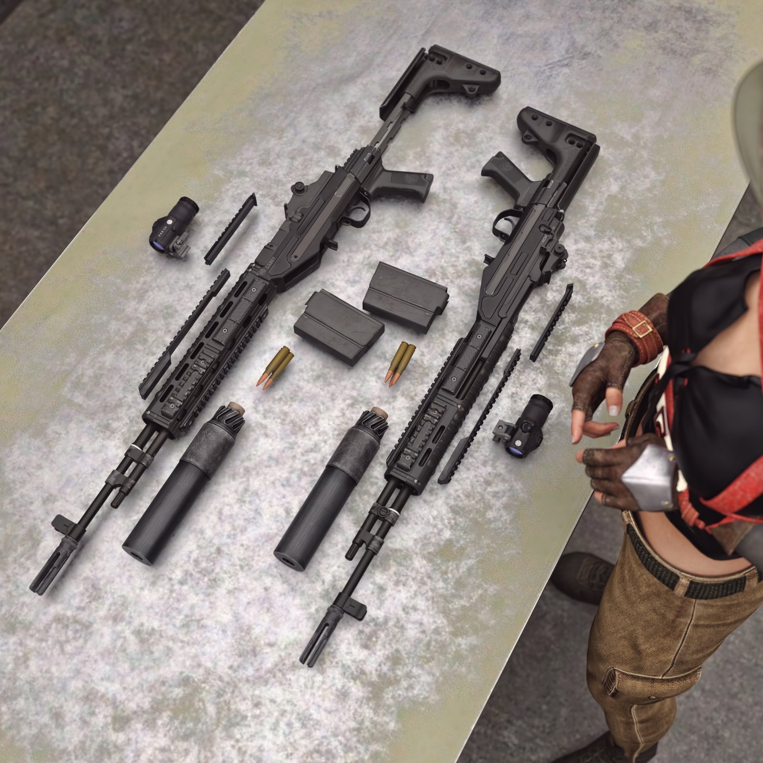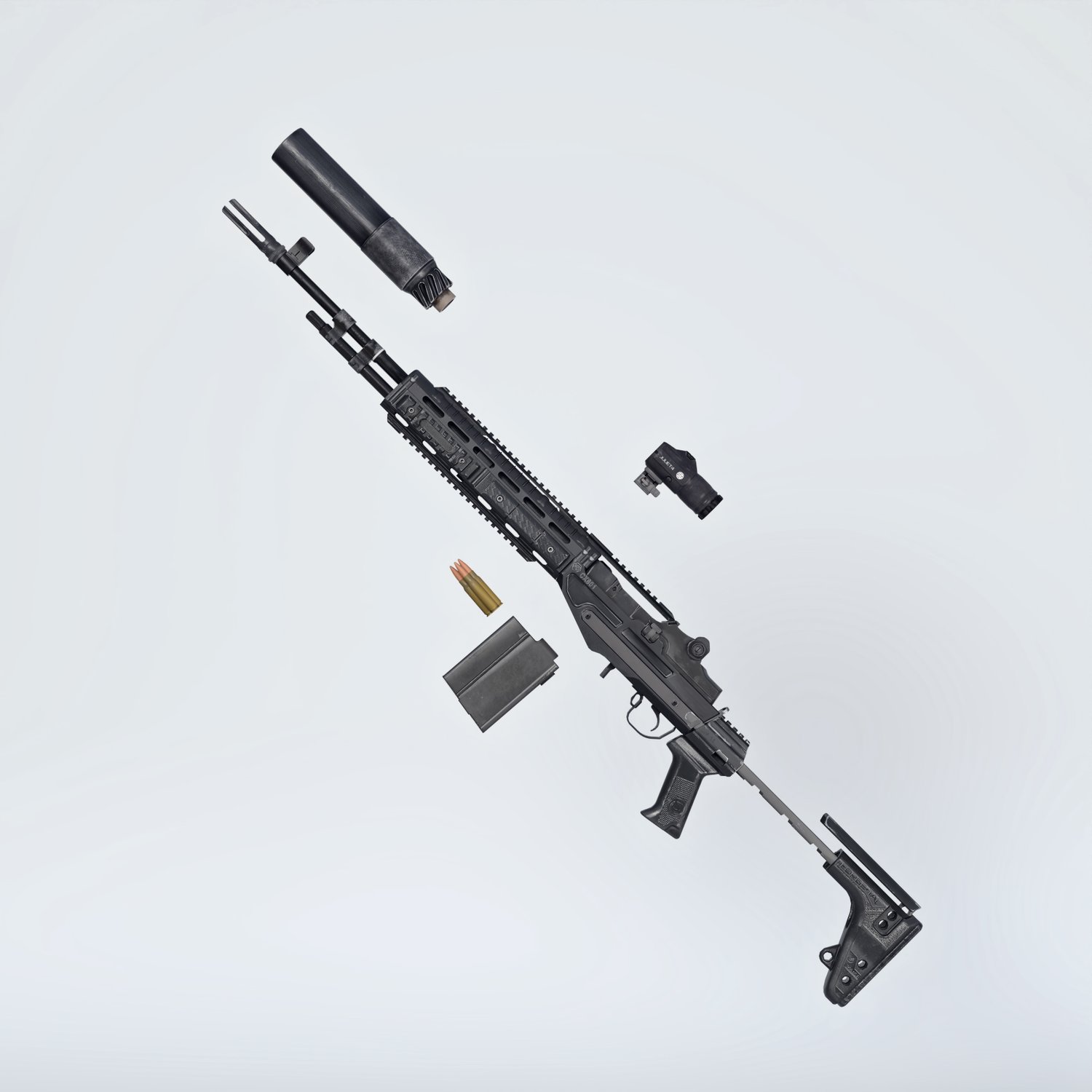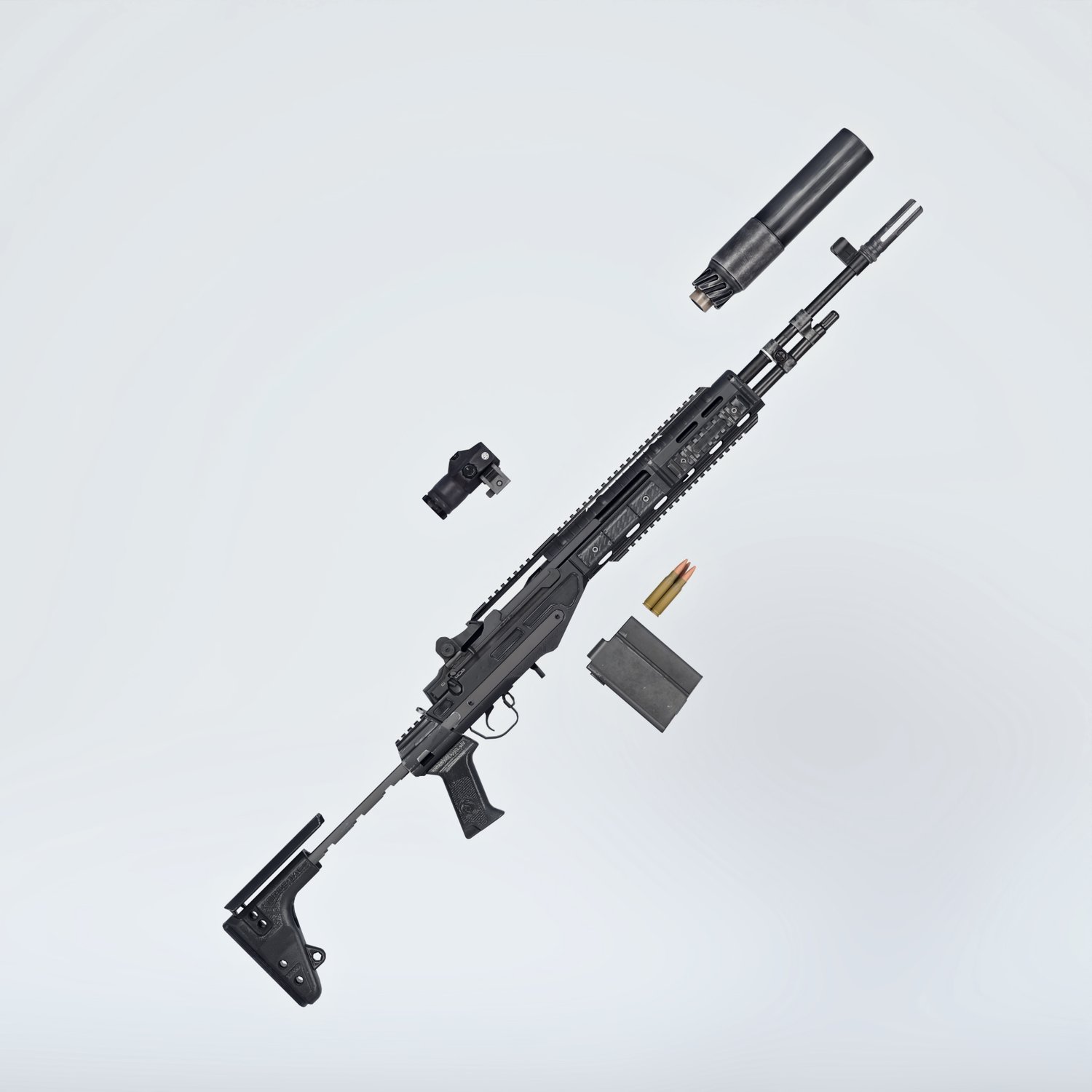 The shortest lived American military rifle gets a new life. Modernized variant equipped with modern attachments- silencer, red dot sight, collapsable stock and plenty of rails to put anything you want on. Powerful cartridge in modern package. Converted and rigged for use with DAZ. Trigger, safety, bolt etc also rigged for more realistic pictures. Since parts are rigged, the gun can be used as just the basic configuration or with any of the mods.
