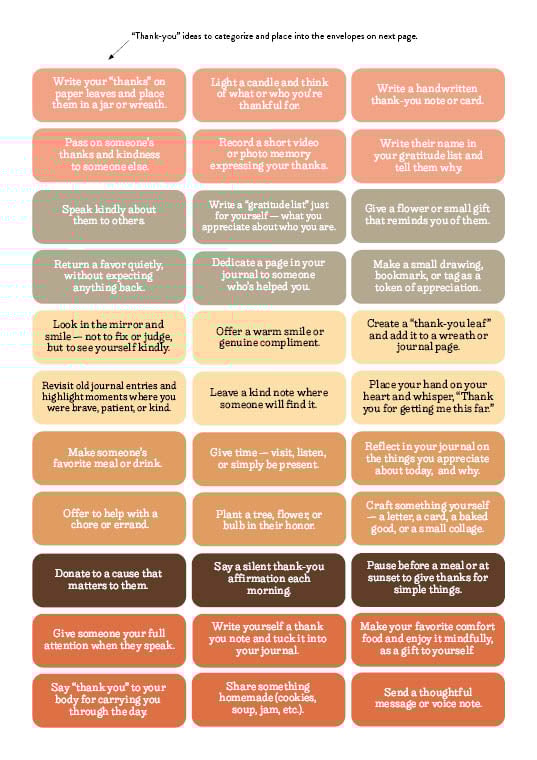 - Thanks to Myself — ways to show kindness, rest, or appreciation to you.