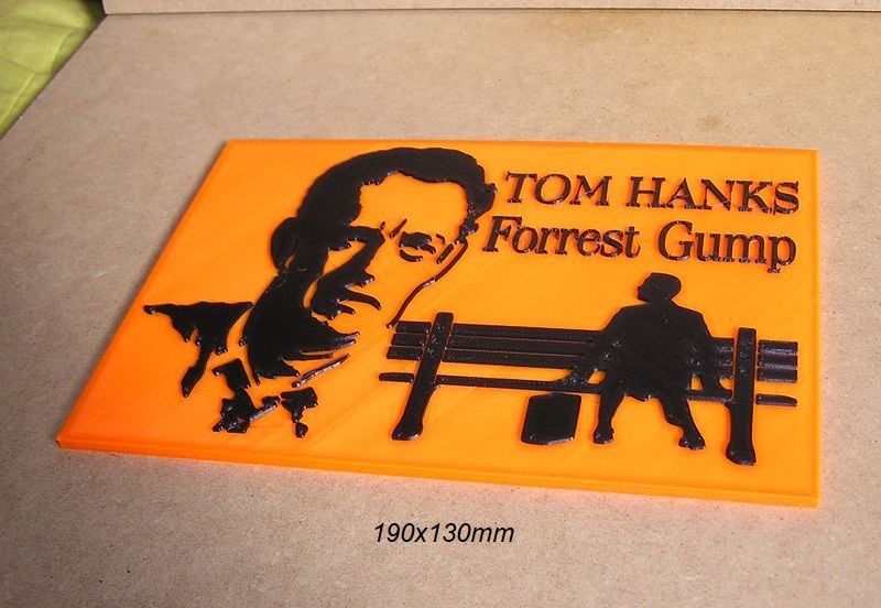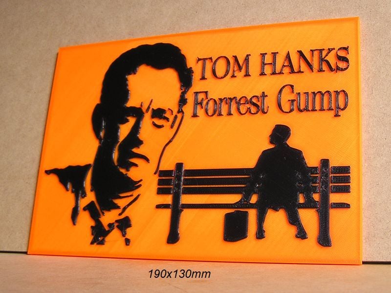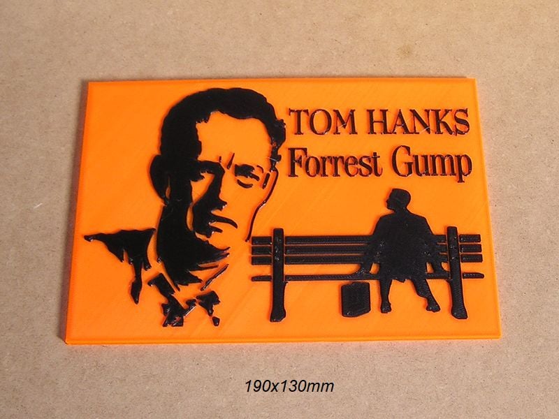 Forrest Gump, Tom HanksPoster, Sign, Logo of the movie, these STL and Gcode files have been created to be printed in various colors with any FDM type printer. The color changes have been made with the Elegoo Neptune 3 Pro printer, but they can be printed on any printer.