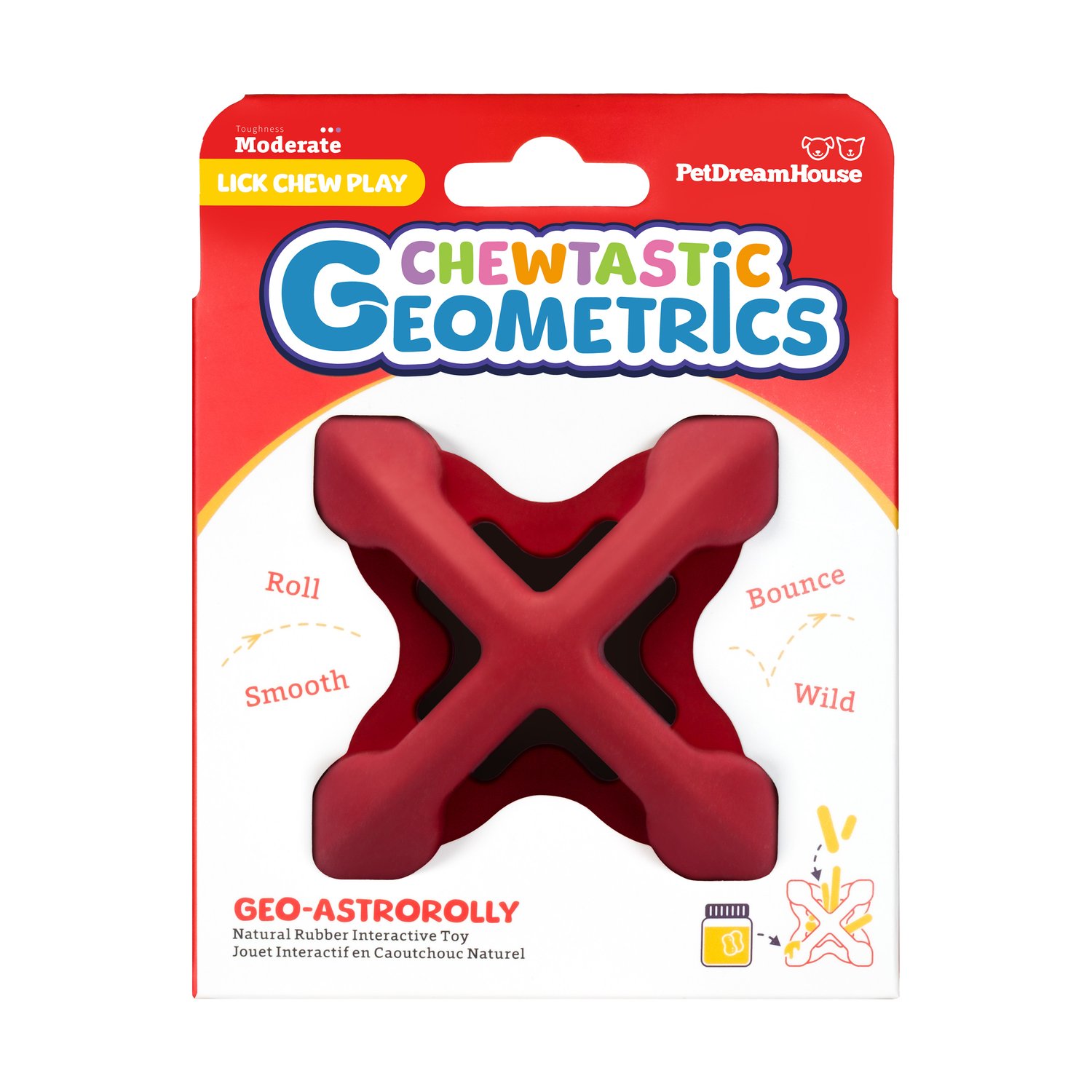 Chewtastic Geometrics Natural Rubber Interactive Toys Geo-AstroRolly Red