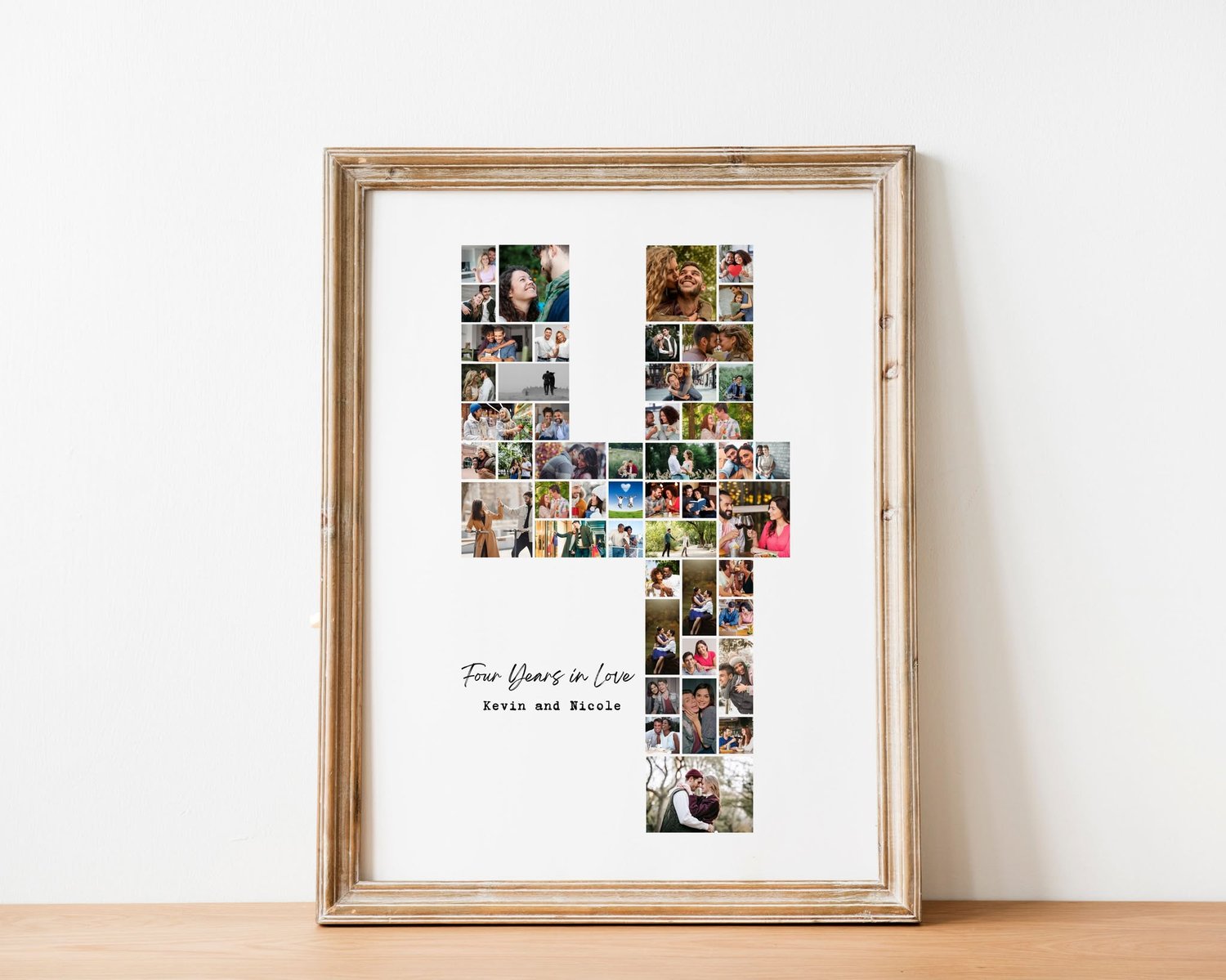 Custom 4 Year Anniversary Gift for Boyfriend, Four Year Anniversary Gift, Custom 4th Anniversary Collage Gift, 4th Birthday