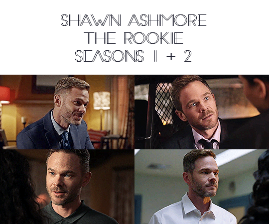 In this here gif pack you’ll find 257 gifs of Shawn Ashmore in the his appearances from season 1 through season 2 episode 9 of ’The Rookie’. All these gifs were made by me, so please don’t claim as your own. Do NOT put into other gif hunts. If credit is given, you may use/edit them as sidebars, crackships, etc, just please ( @ ) me so I can see your wonderful creations! (unless you’re the lovely person who commissioned them, then you can do whatever tf you want with them!)
