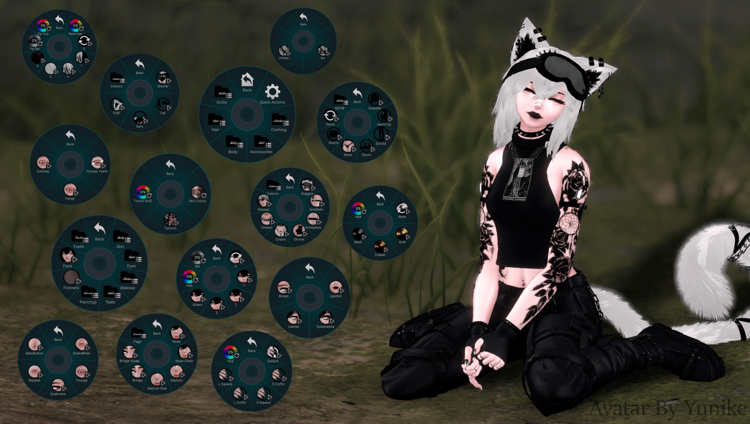 • Piercings (Nose, Nose Chain, Septum, Septum Size, Bridge, Bridge Swap, + Snake Bites, Tounge, Brows, Nipples, Belly Button)