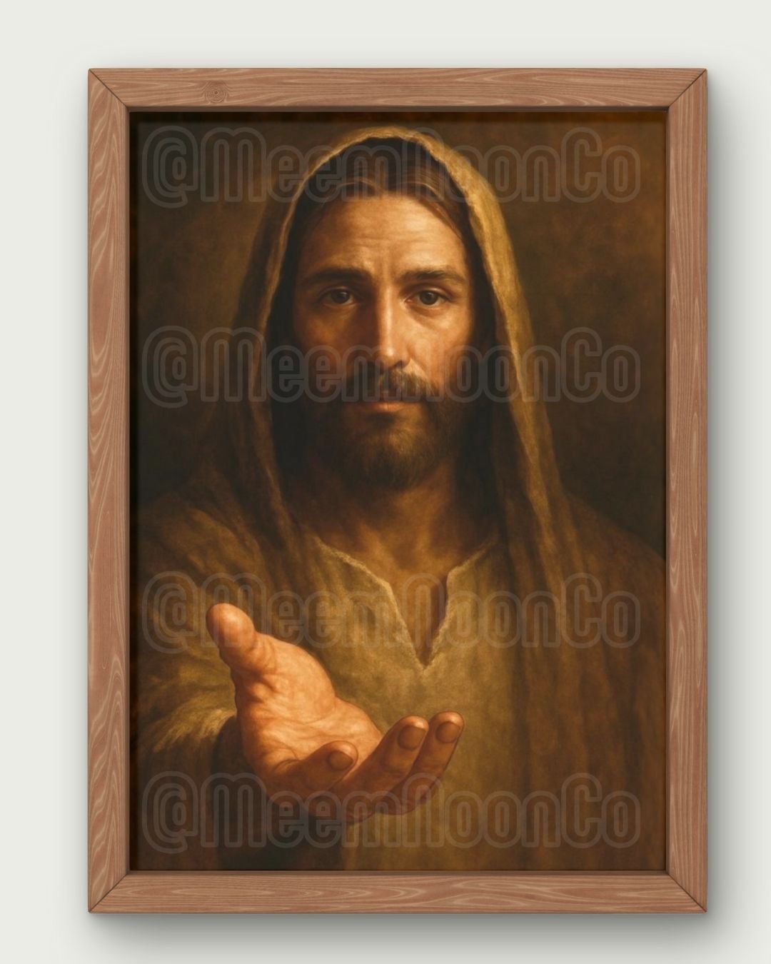 This gentle artwork captures the heart of Christ’s invitation. With arms extended and a soft, compassionate gaze, Jesus is portrayed as the loving Shepherd calling the tired, the anxious, and the broken to find rest in Him.