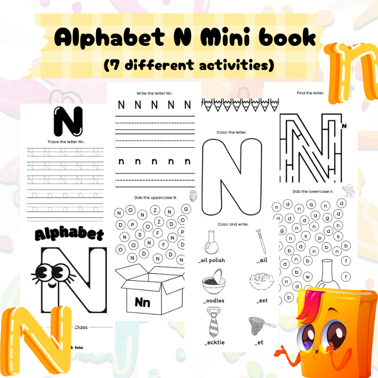 Nurture your little learner’s literacy skills with this Alphabet N Mini Book — a printable set packed with 7 engaging activities to build confidence in letter recognition, phonics, and handwriting.