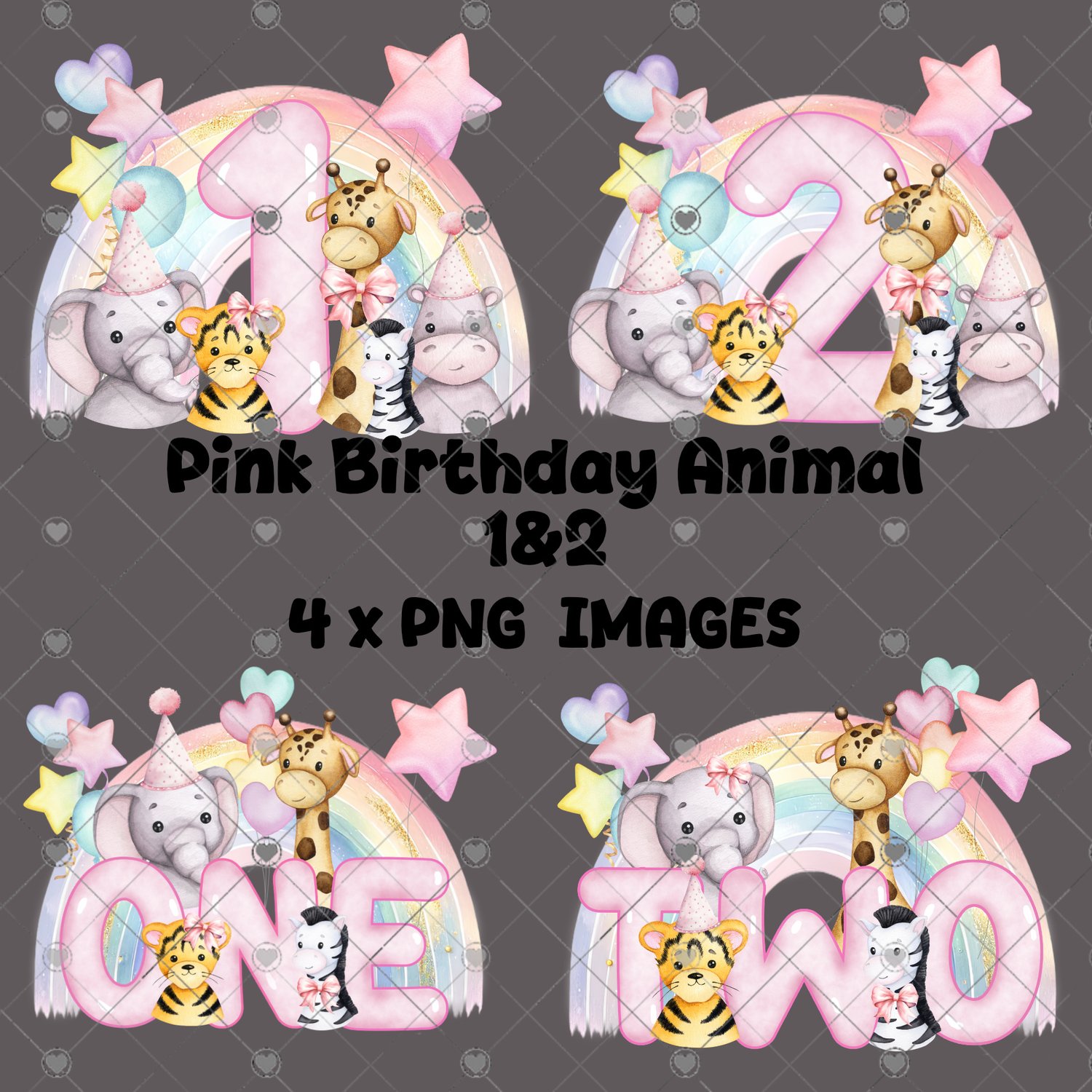 Pink Birthday Animal 1 & 2