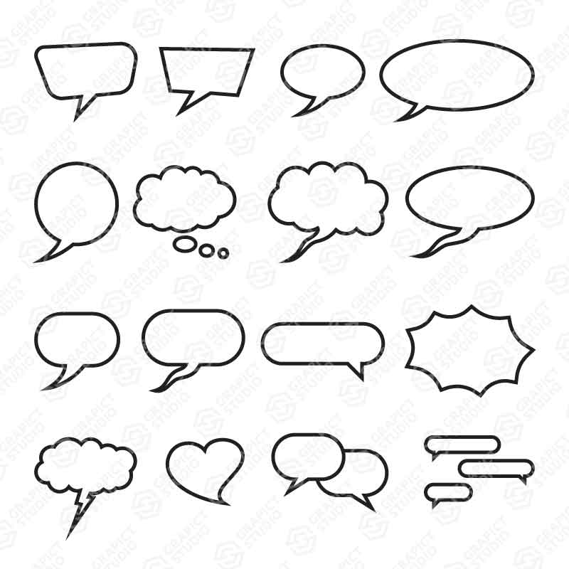 Bubble speech set of 16, related to chat app, communication or conversation, outlined style, vector design element.