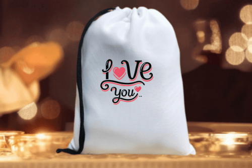 Create heartfelt gifts with this Valentine's Day sublimation design featuring the phrase "I Love You" in a romantic and elegant style, perfect for sacks or gift bags.