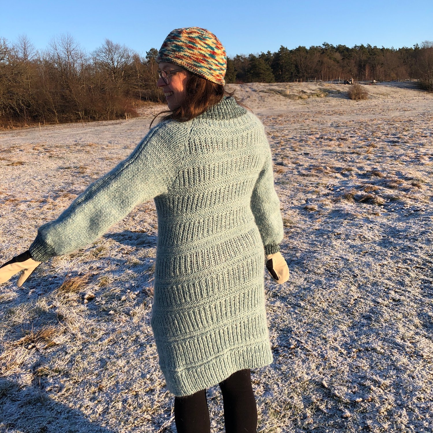The Icelandic wool of Alafosslopi yarn is amazing; it’s warm and even withstands rain. However it’s also quite itchy and that’s where I got the idea of combining it with soft superwash wool for the collar, cuffs and buttonband. Large areas of warmth combined with softness against the skin.