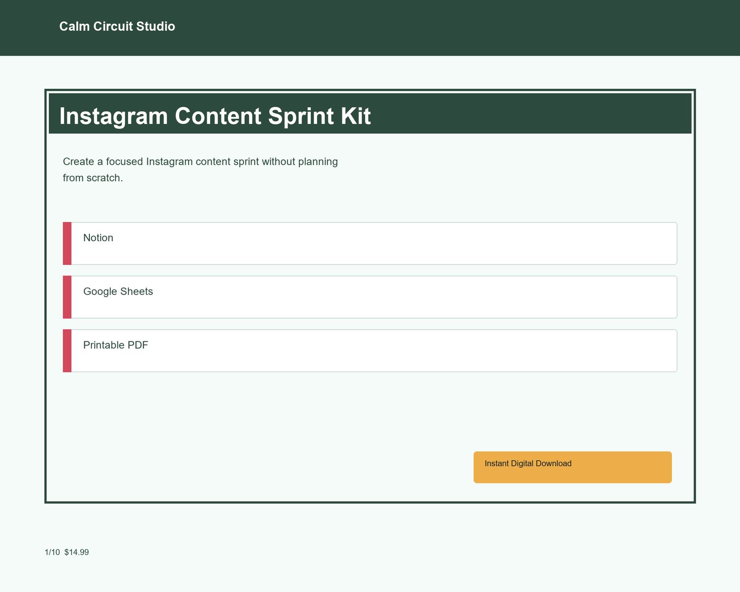A short-run Instagram content planning kit for creating a focused 14-day sprint.