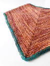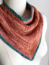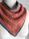 This bandana cowl pattern features garter stitch fabric with an i-cord edging. It is worked from the top down, beginning with a flat triangle, then joined to work a flared tube in the round. The pattern includes video tutorial links for the relevant techniques.
