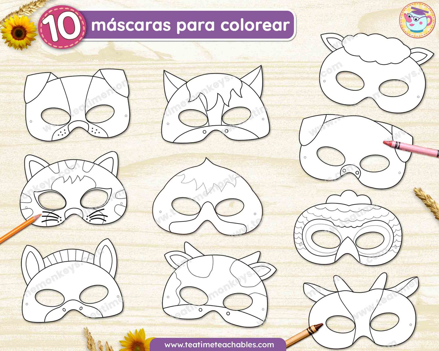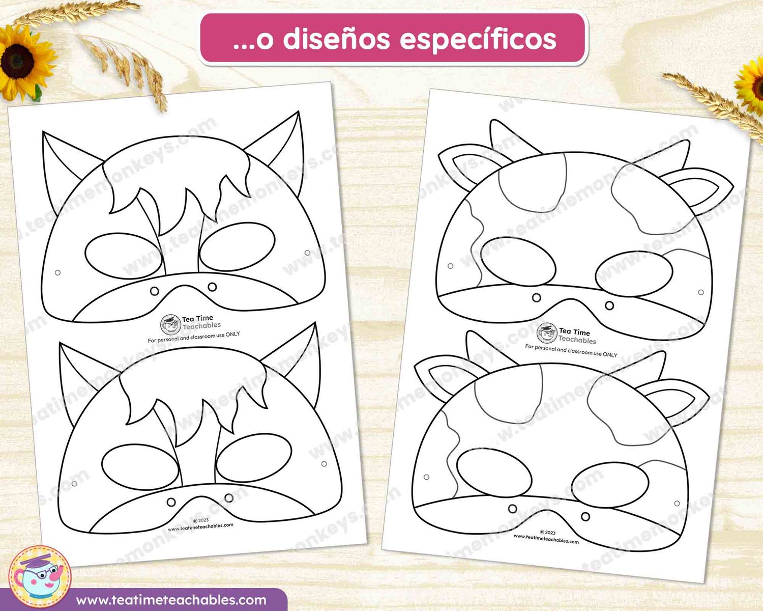 ¡Tus niños pueden divertirse durante horas con estas máscaras de ANIMALES DE LA GRANJA para colorear y decorar!