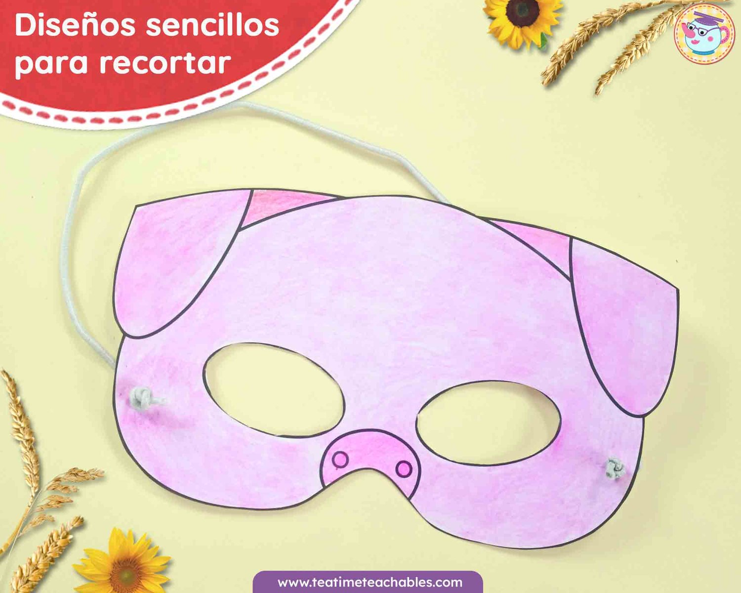 Las máscaras tienen formas simplificadas para facilitar el recorte, y guías para mostrarte dónde colocar el elástico. Además, dejan la nariz de los niños descubierta, por lo que son mucho más cómodas de usar que otros diseños en Internet.