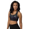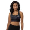 Sports Bra offers excellent support during medium to high-intensity exercise. It’s made from compression fabric, has a double-layered front, and less stretchy fabric detail in shoulder straps for extra support. The bra’s feminine, longline silhouette makes it the perfect workout bra or a chic streetwear top.