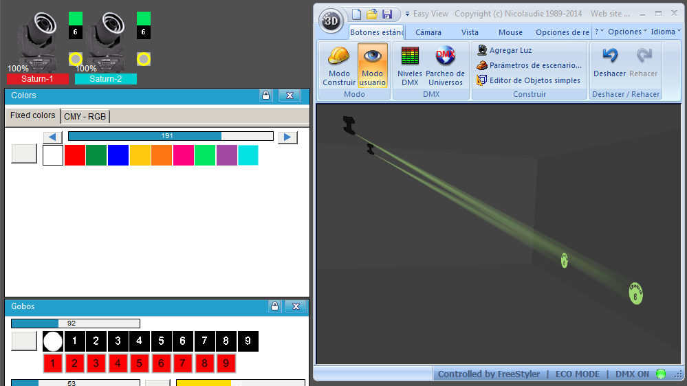 - Esta librería NO reemplaza al Fixture de Freestyler o QLC+, sólo es para ver la representación 3D. Es decir, HAY QUE TENER YA EL FIXTURE DE FREESTYLER o de QLC+ para controlar el equipo real.