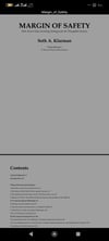 كتاب "Margin of Safety" (هامش الأمان) للأسطورة سيث كلارمان ليس مجرد كتاب، بل هو ظاهرة في عالم المال. توقفت طباعته منذ سنوات، وأصبحت نسخه الورقية نادرة جداً لدرجة أنها تباع في المزادات بآلاف الدولارات (يمكنك التأكد من ذلك بنفسك!).