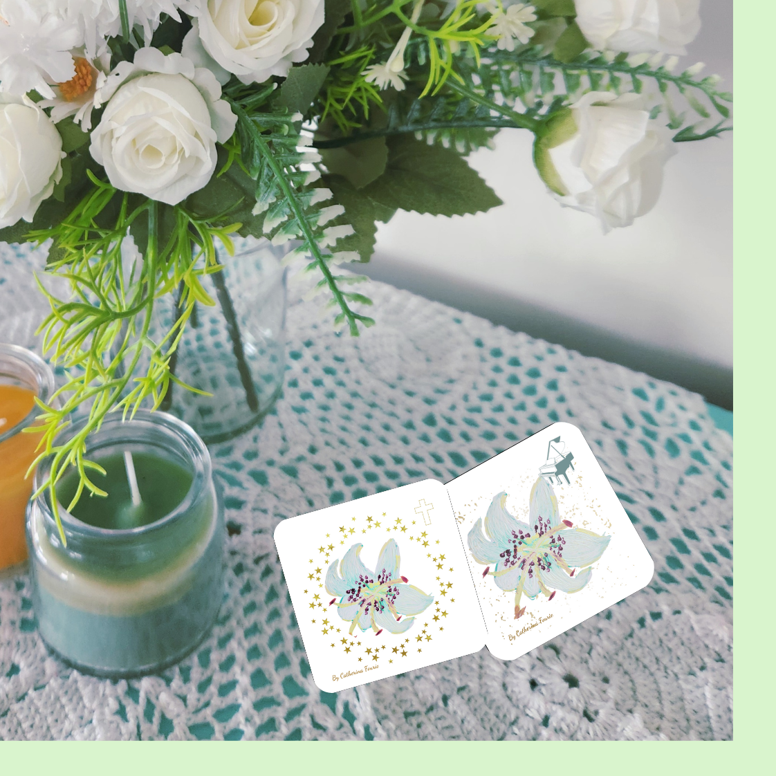 Be encouraged to seek the will of God in the every day moments of your life, with these printable Christian blue lily square coasters designs.