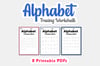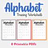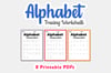 Alphabet worksheets, Tracing Uppercase and Lowercase letters for kindergarten, preschool and Montessori kids for handwriting practice and educational activities in a printable PDF page.