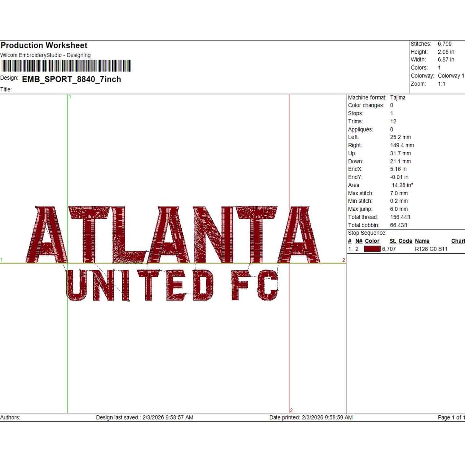 MLS Atlanta United FC Wordmark Logo Embroidery Designs, Atlanta United FC Embroidery Files, MLS Atlanta United FC Soccer Team Logo Embroidery, Major League Soccer Machine Embroidery Design, Digital Download