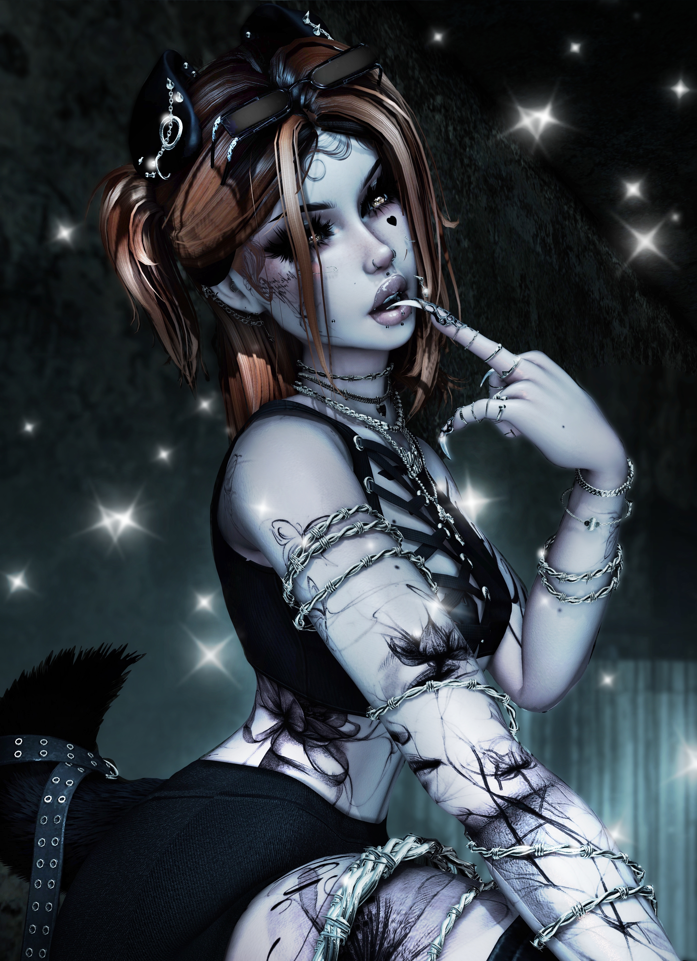 ✔ Face Piercings, Body Piercings, Toe Rings, Belly Ring, Bracelets, Necklace 1, Necklace 2, Safety Pin Bracelet, Chokers, Rings, Nail Cyber sigilism, Safety Pin Piercings