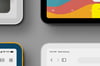 Premium tablet mockup set with 9 isolated clay-style iPads in clean flat-lay arrangement. Changeable tablet colors, editable glass reflection, and Smart Objects for effortless design showcase — 8000 × 5500 px at 300 DPI.
