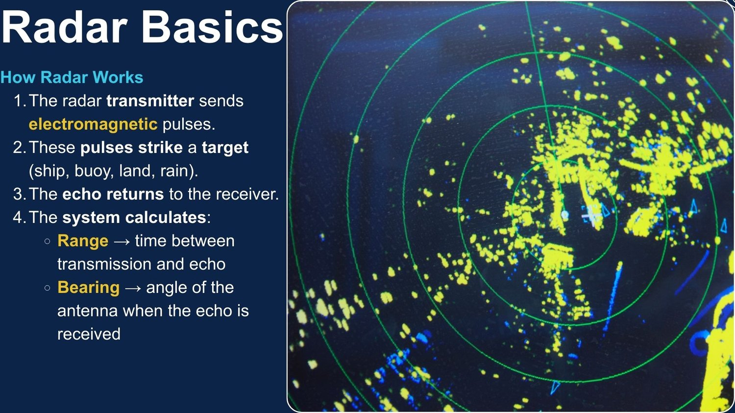 This professional 73-slide training package is the most complete and practical guide available today for anyone who wants to master marine Radar & ARPA operations.