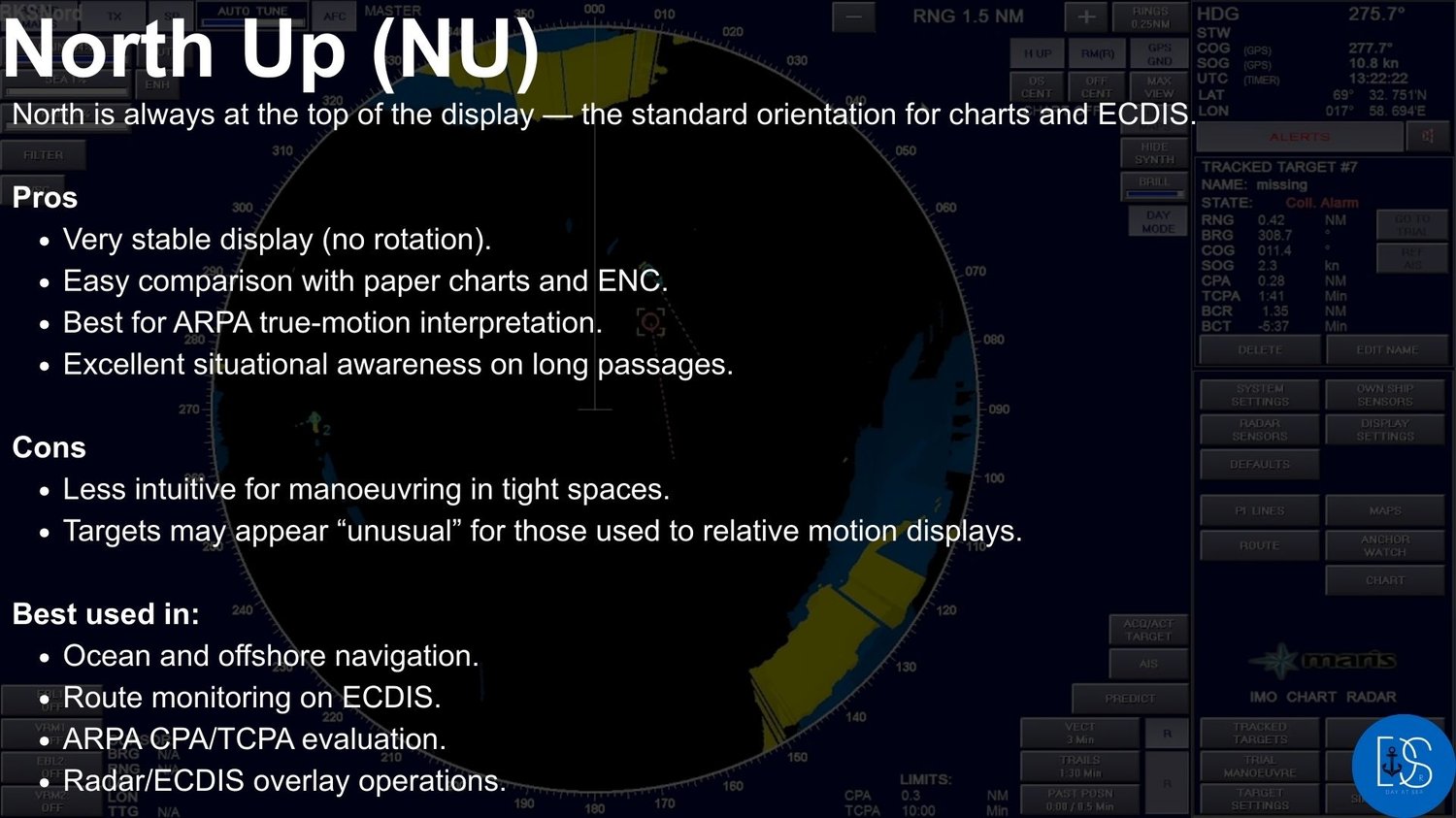 ✔ Display Modes (Head-Up, Course-Up, North-Up) — Pros, cons & operational use