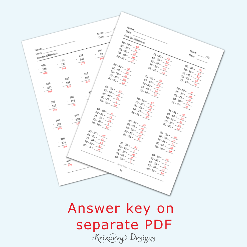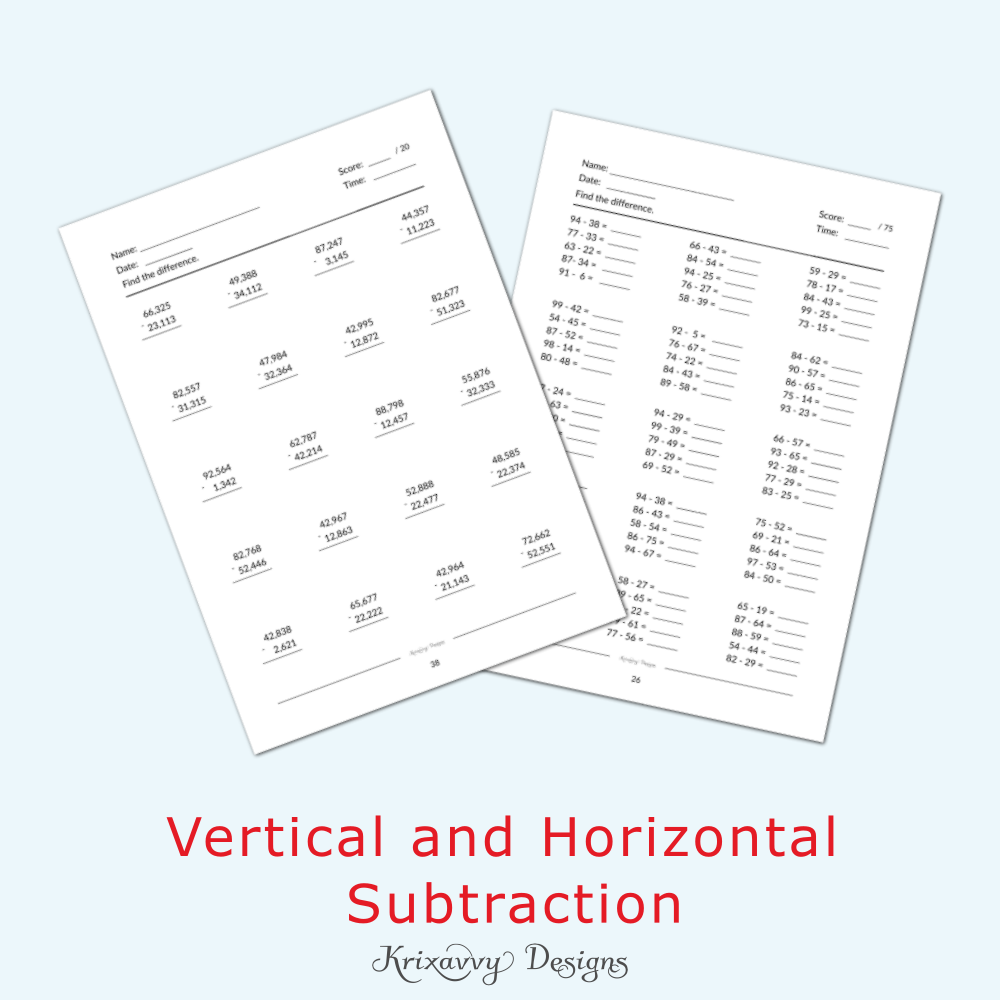 | Math Worksheet | Subtraction Worksheet | Printable PDF | Math Practice | Math activity | Subtraction Practice | Instant Download