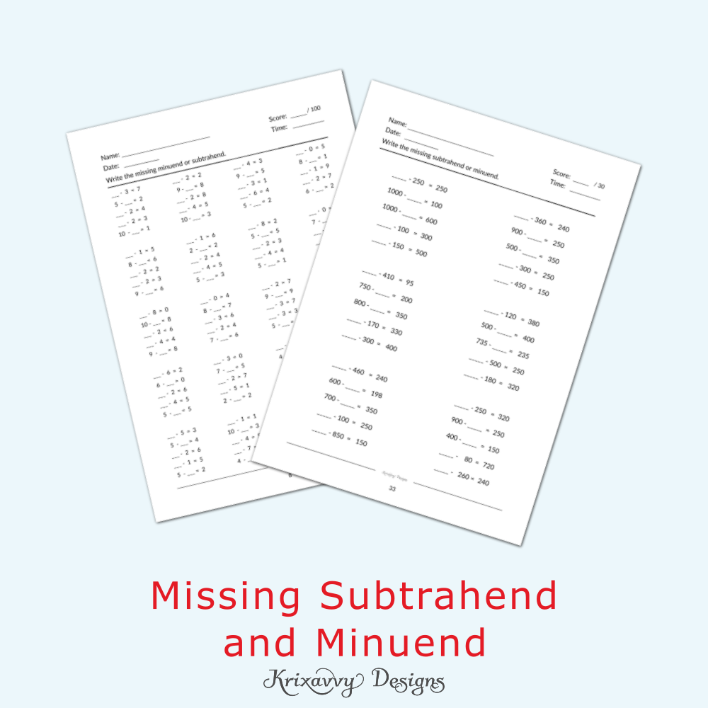 ✅ Challenging: go up to next level with missing subtrahend and minuend exercises.