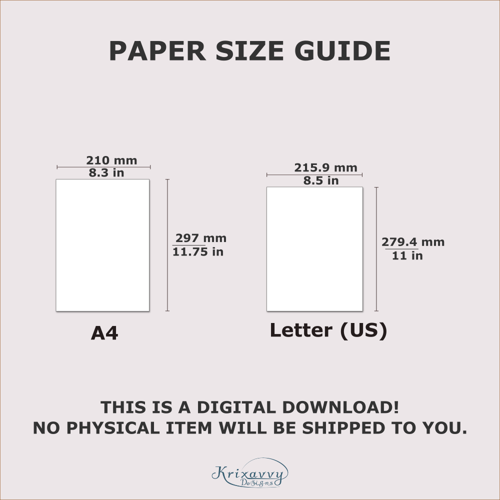 ✔ A4 Size = 210 × 297 mm / 8.3 x11.75 in