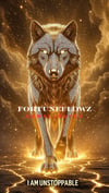 I Am Unstoppable – Golden Wolf of Power | 8K Phone Wallpaper