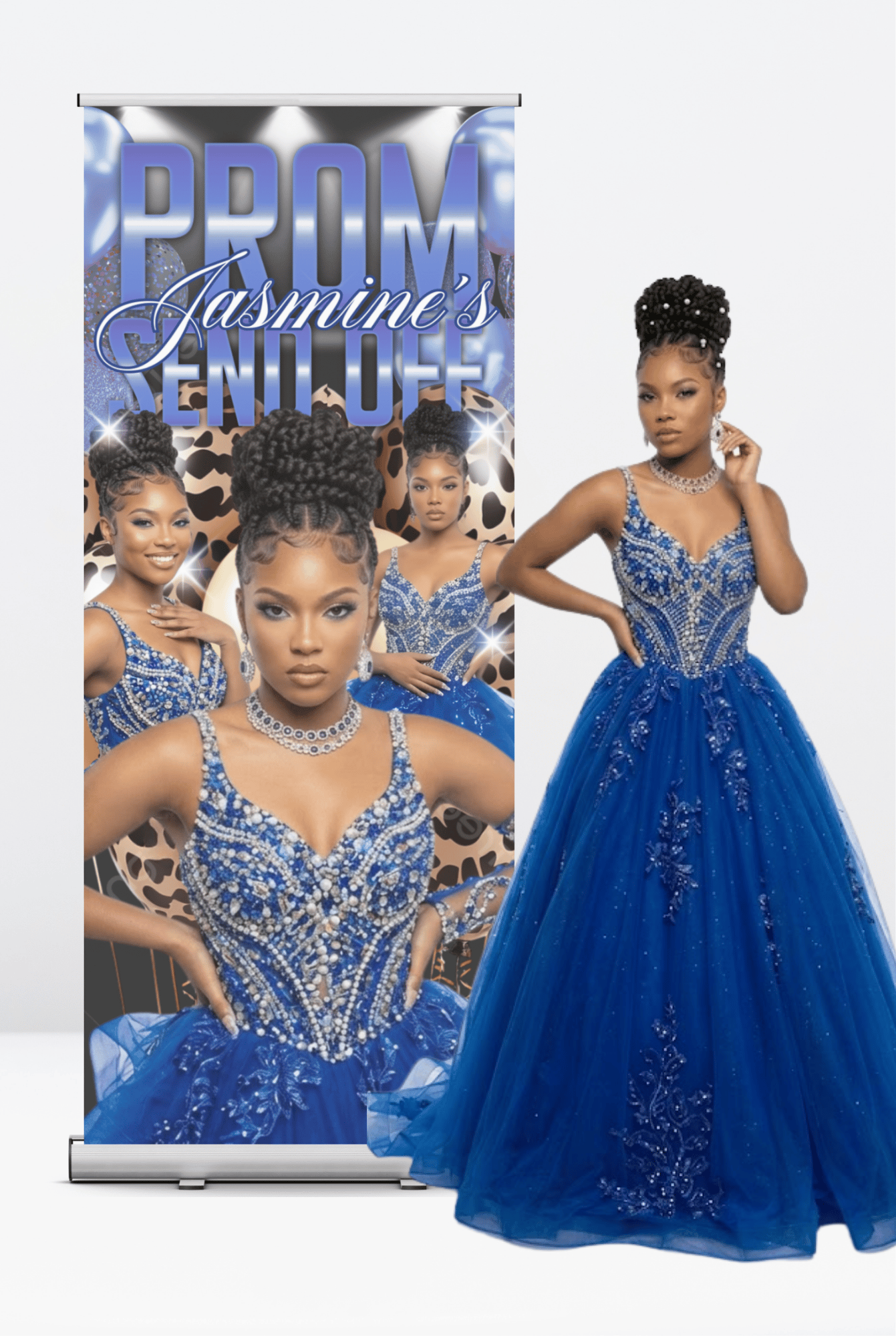 Stand tall and grab attention with this editable 33x81 retractable banner template—perfect for prom events, trade shows, vendor events, and more! Easily customize it in Canva with your own colors, text, branding, and images.