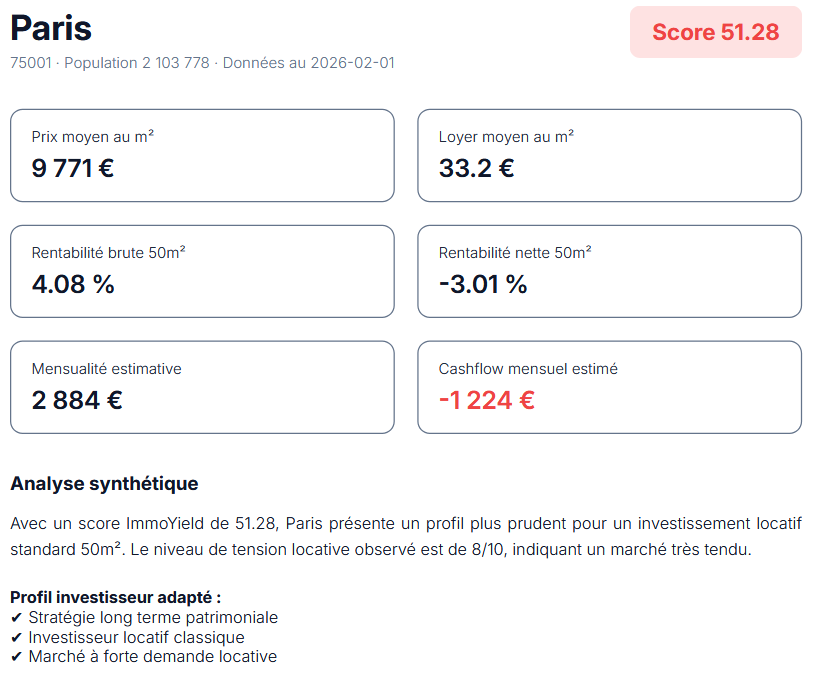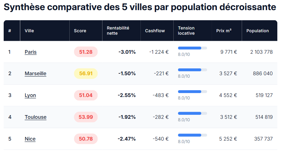 - Comparer rapidement les rendements nets par ville