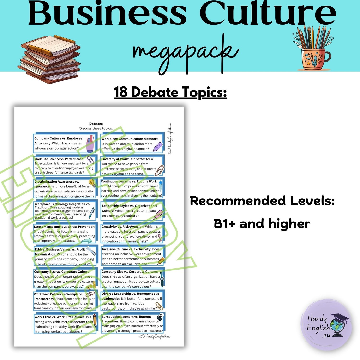 - to improve communication by discussing various topics related to Business Culture, communicating at work, Work Environment, Work Conflicts, Job Security, Codes, Rules, Perks, Values and more!!