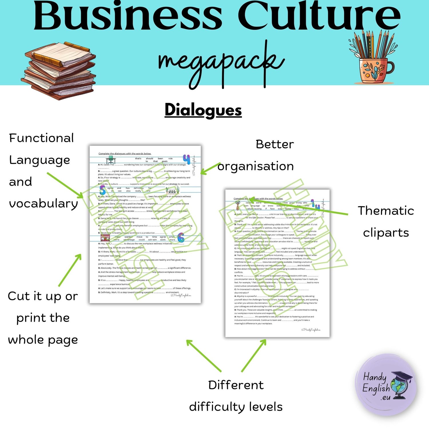 A collection of multiple activities related to Business English, especially Business Culture and working in a big company.