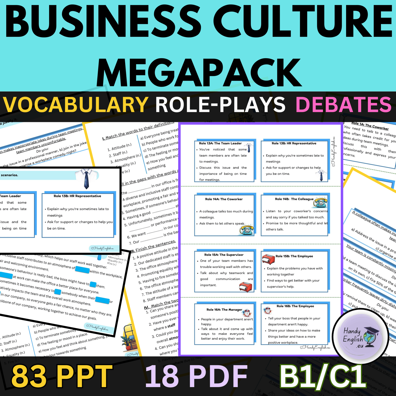 - 18 (!!) pages full of various activities - dozens of vocabulary tasks, role-plays, debates, and dialogues, problem-solving activities